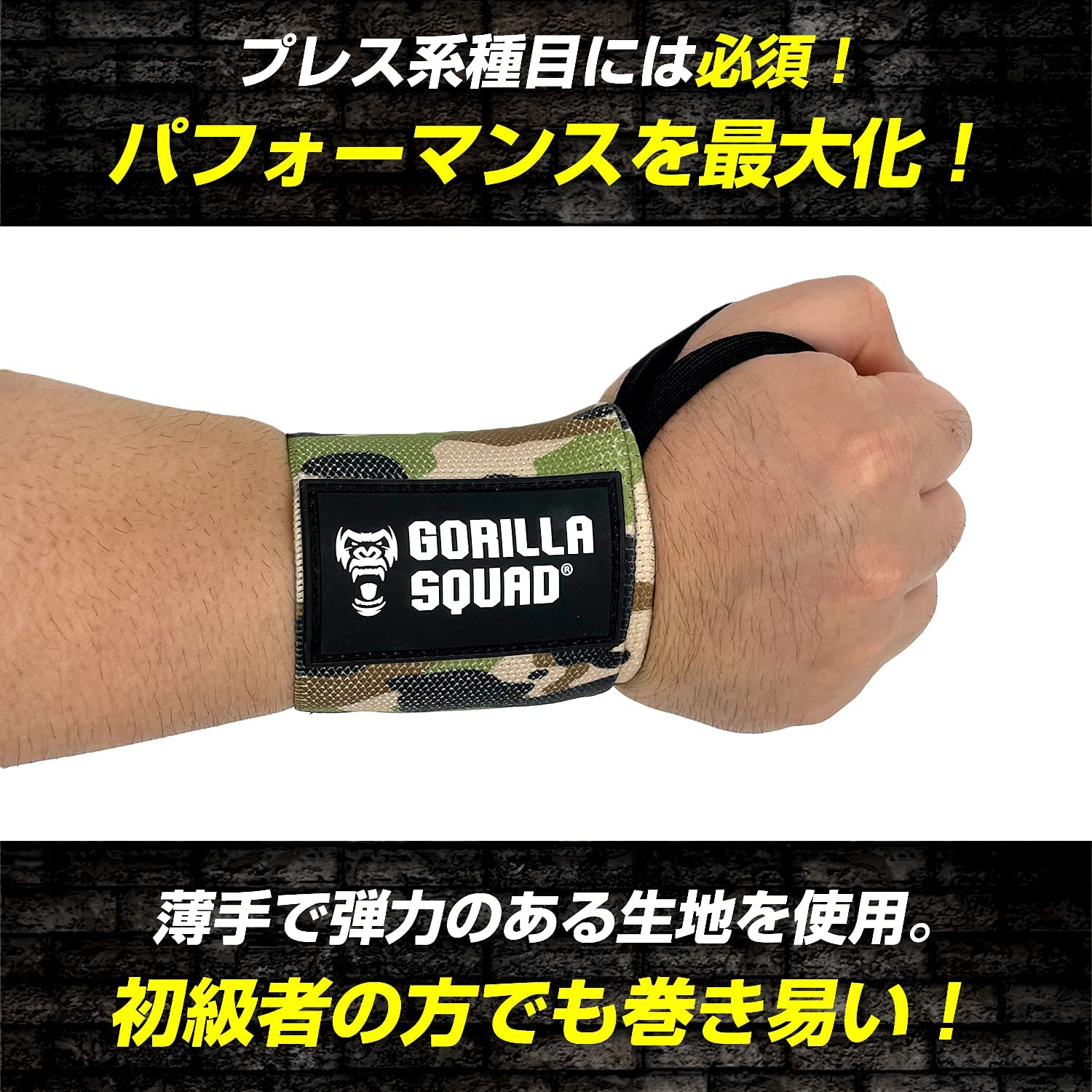 商品サイズ:長さ50cm(19インチ)×高さ7.5cm(3インチ)/ 左右セット / 親指ループ(サムリング)付き 薄手で弾力のある生地が、手首にピッタリフィットするのでしっかりと関節を保護することが出来ます。また柔軟性もあるので手首の角度維持など着け心地も抜群です。 トレーニング初級者から中級者の方までご使用いただけます。特に初級者の方は使用をおすすめします。 手首を固定することにより負担を軽減し、怪我の予防につながります。また手首のブレが減り安定することにより重量アップを狙えます。 強力マジックテープでずれることなくしっかり固定できます。